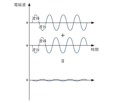 因波峰與波谷重疊而減弱。