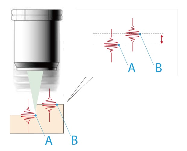 所產(chǎn)生的複合波形峰值即為鏡頭的焦點(diǎn)位置,可透過與鏡頭的移動(dòng)距離同步來確定高度。