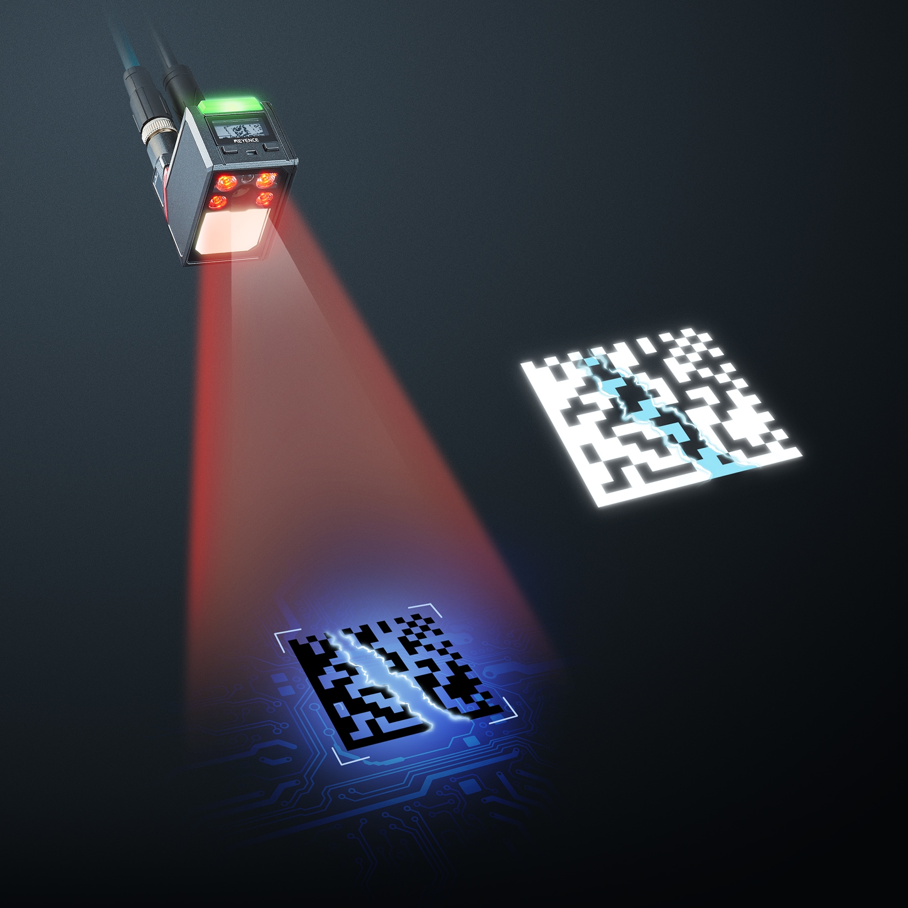 無論條碼狀態(tài)如何變化,皆可達(dá)到 “穩(wěn)定讀取”。也可以實(shí)現(xiàn)製程之間的 “可視化”。使用SR-X 系列,藉由在相同網(wǎng)路連接多臺(tái)條碼讀取器,可依照時(shí)間順序分析個(gè)別安裝環(huán)境下的條碼狀態(tài)變化。藉由將前製程的讀取資訊與後製程的條碼讀取器連接,即使有光暈、髒污、損傷等條碼破損狀態(tài)也可以讀取。