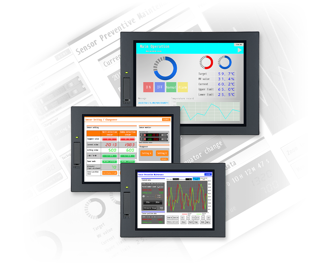 支援生產(chǎn)現(xiàn)場多元需求的人機(jī)介面(HMI)。有配備提升裝置便利性功能的各種產(chǎn)品。