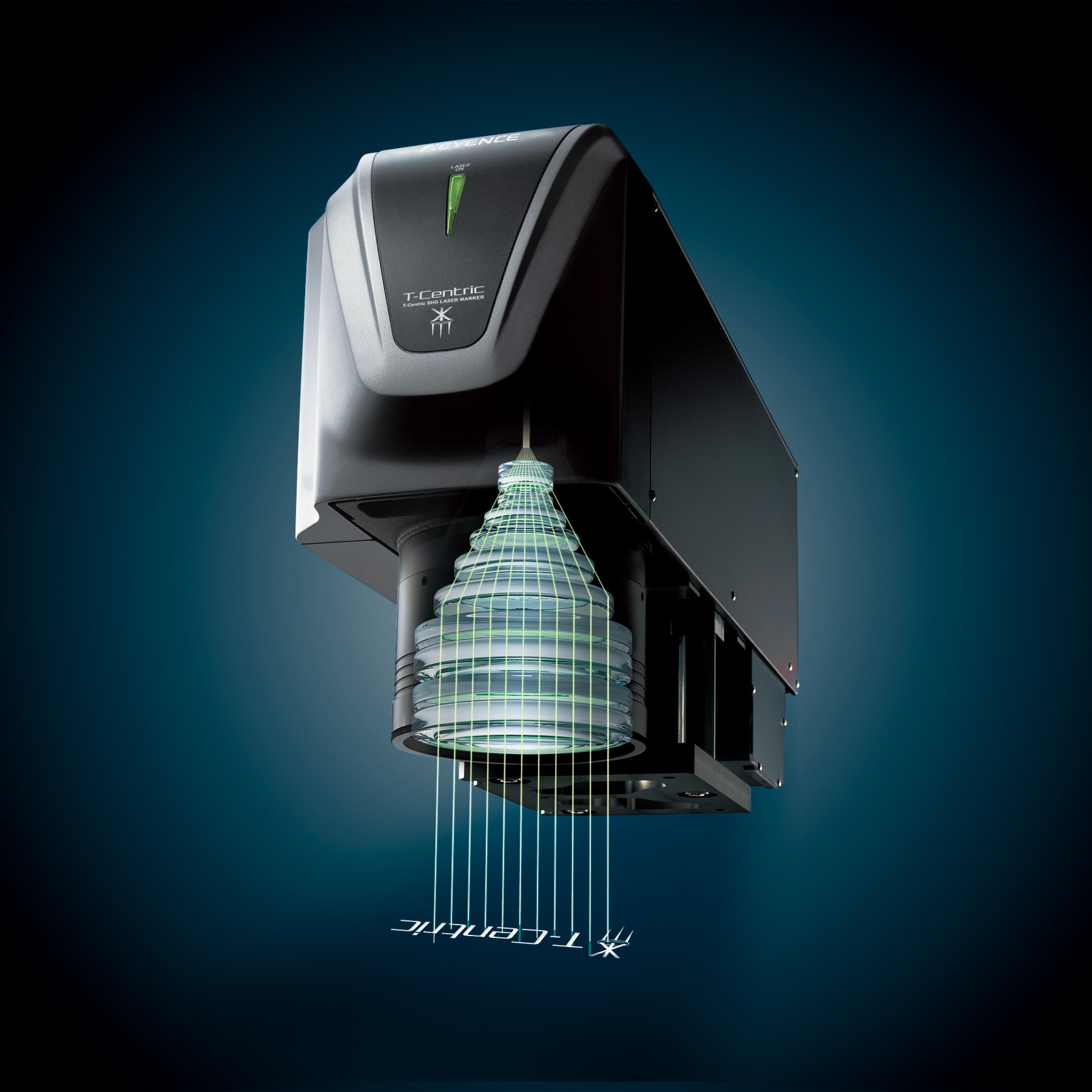 搭載遠(yuǎn)心鏡頭之綠光雷射刻印機(jī)。