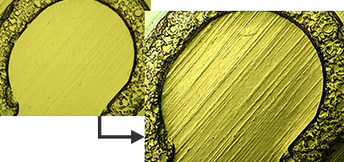 評估表面形狀的深淺和粗糙度時,形狀的高低差越小,對比度越低,因此越難觀察和評估。以往顯微鏡的缺點(diǎn)是由於照明和角度不同,影像的視覺效果也不同,容易因反射而產(chǎn)生光暈,並降低對比度。結(jié)果就是很難觀察到淺淺的凹陷,而將其遺漏。4K數(shù)位顯微鏡VHX系列具有多重照明功能,可自動獲取全方位的照明資料。從中選擇最適合觀察的影像,可大幅縮短照明設(shè)定的時間。