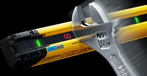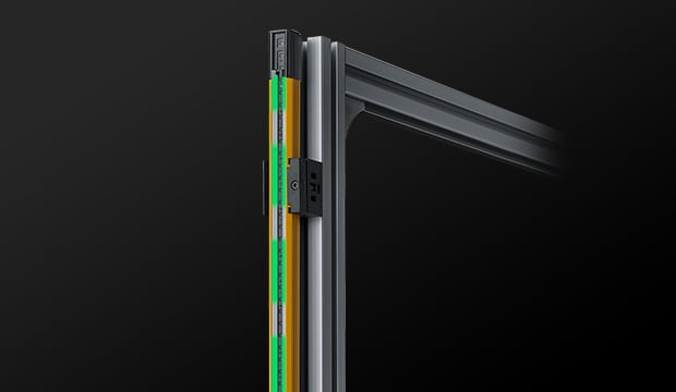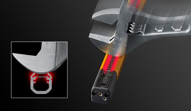 安全光柵GL-V 系列搭載大型線狀指示燈,僅靠本體即可清楚顯示狀態(tài)。當(dāng)入光時(shí)顯示綠色,遮光時(shí)顯示紅色,即使從遠(yuǎn)處也能一眼辨識(shí)光柵是否遮光,有助於迅速復(fù)原作業(yè)。此外,透過顯示模式還可確認(rèn)受光量降低或錯(cuò)誤狀態(tài),便於及早採取對(duì)策。GL-V 系列可廣泛應(yīng)用於設(shè)備啟動(dòng)、調(diào)整與運(yùn)轉(zhuǎn)階段。雖然尺寸僅為22 mm × 22 mm,卻具備約3 mm 厚的堅(jiān)固外殼結(jié)構(gòu),展現(xiàn)高耐用性。重新設(shè)計(jì)的內(nèi)部光學(xué)構(gòu)造更支援最長(zhǎng)15 公尺的檢測(cè)距離。