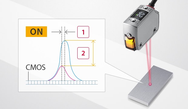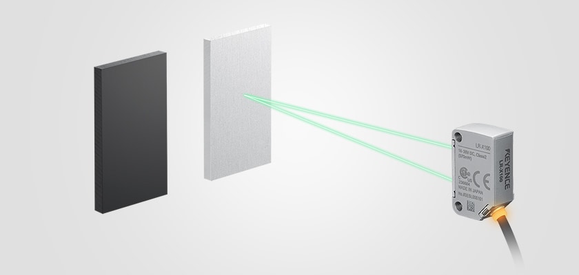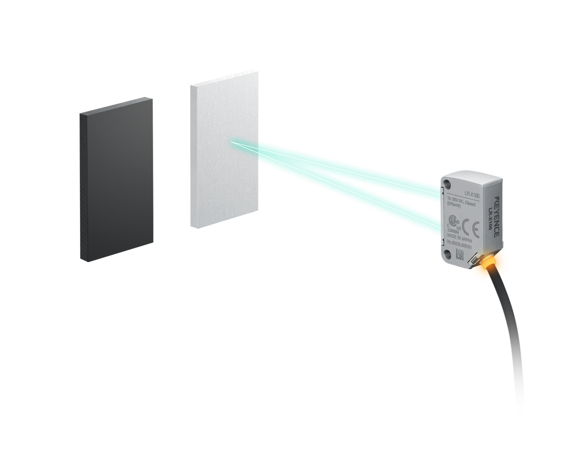 LR-X 系列針對(duì)至目標(biāo)物的距離進(jìn)行檢測,而非檢測受光量。標(biāo)準(zhǔn)檢測段差最小為0.5 mm,也可支援薄形工件檢測。此外透過最大300 萬倍的高動(dòng)態(tài)範(fàn)圍,可不受目標(biāo)物顏色與形狀影響,穩(wěn)定檢測。