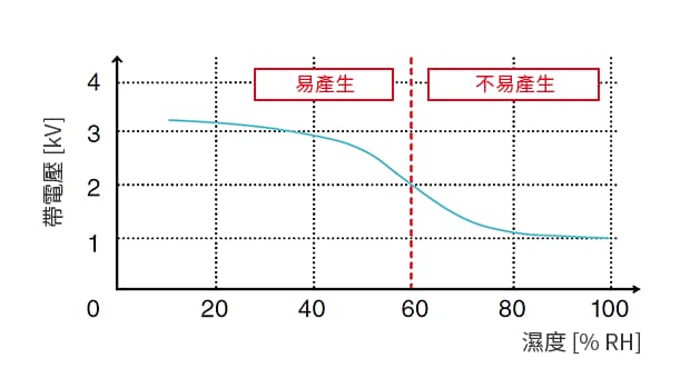 濕度與靜電產(chǎn)生量的關係圖(代表例)