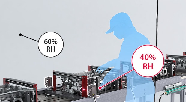透過同時量測靜電與濕度,可更精確地掌握容易產(chǎn)生靜電問題的位置,進而制定最合適的靜電對策。此外,由於「設備周圍」的溫度通常較高,濕度可能低於「房間邊緣」。因此,即使已調整整體空間的濕度,若靜電問題仍持續(xù)發(fā)生,檢查「設備周圍」的濕度狀況,往往有助於找出問題根源並加以改善。