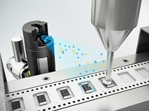 準備了支援?6 mm軟管的2種管嘴。即便是無法安裝本體的狹窄場所,亦可透過使用軟管,實現(xiàn)單點的除塵和靜電消除措施。