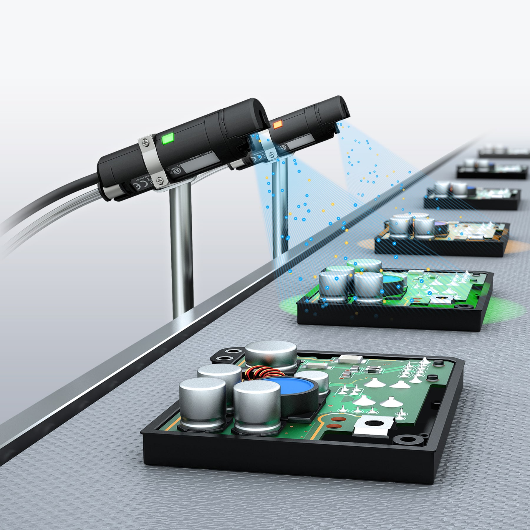 可透過燈光顏色讓使用者了解目標(biāo)物目前帶電狀況。 從任何角度一眼就能得知是否已經(jīng)除電完成,可以簡單地確認設(shè)備運作時的除電效果。