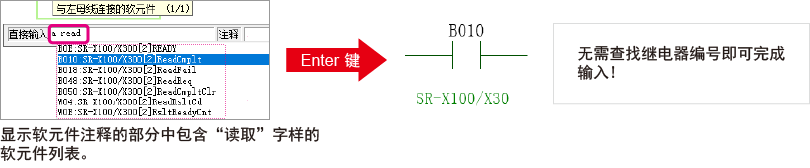 當(dāng)您使用階梯圖程式時,您可以直接將元件註釋或參數(shù)名稱輸入到自動搜索並顯示輸入候選項。